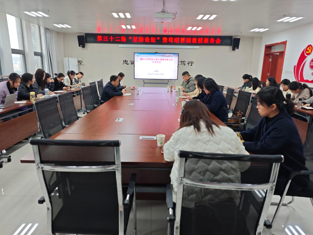 11月12日,我院在高新校区博文楼1201会议室举办第三十二场“星海论坛”学术报告会,邀请全国高校优秀思想政治理论课示范课百人巡讲团成员、全国高校思想政治理论课骨干教师研修班授课专家、西北大学必赢官网苟昭赟副教授为我院师生作题为《新时代思政课教育教学的历史自觉》的学术报告。副院长米文科主持报告会。