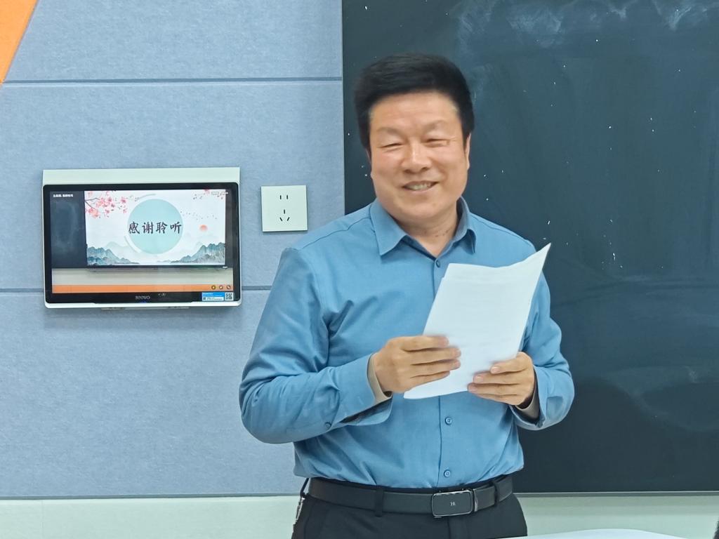 沈宏军书记最后总结,指出教学需在宏观层面实现政治性、学术性、价值性与知识性的统一,兼顾主体性与主导性的统一;中观层面则要从教学设计、课堂教学、教材分析以及教学基本功四个维度展开打磨。同时他提出建议,赛制方面可增设教学设计与教学反思环节;评分标准中应纳入学法指导的相关考量;教学评一体化的实施过程中,“评”的环节仍需补足。他强调教学不能止步于理论讲授,案例的作用至关重要,既需确保案例恰当适配教学主题,又要深度剖析案例内涵,让案例与教学内容实现高度契合。