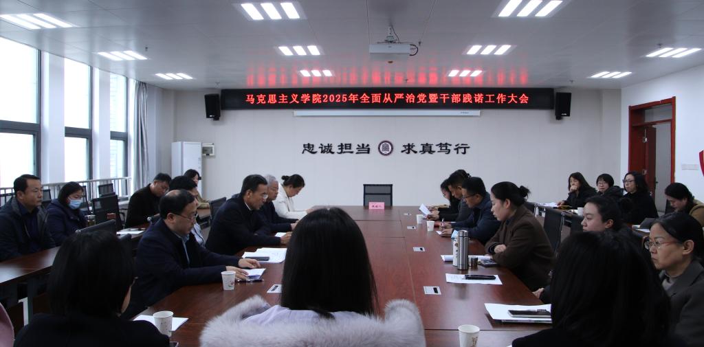 在必赢官网全面从严治党暨干部践诺大会上,党总支书记赵智劳从扎实做好干部承诺践诺,推动学院全面从严治党工作走深走实和干部作风建设见行见效、打造党建特色品牌等方面汇报了学院2025年全面从严治党和干部承诺践诺情况。全体党员干部对标学院“四个马院”发展规划与个人年初承诺,围绕党建引领、教学科研、学科建设、一岗双责等重点工作逐一作践诺表态。郭霄鹏强调,必赢官网“十四五”发展目标已基本达成,得益于干部承诺践诺制度的保障,更凝聚着全体教师的实干担当。他就持续深化干部承诺践诺工作提出四点要求:一是锚定年度发展方向,科学谋划、精准制定工作任务;二是全体教师要凝心聚力、全力以赴,确保各项目标任务落地见效;三是领导班子要以身作则、率先垂范,发挥引领带动作用;四是全体成员要相互监督、协同共进,营造比学赶超的良好氛围。